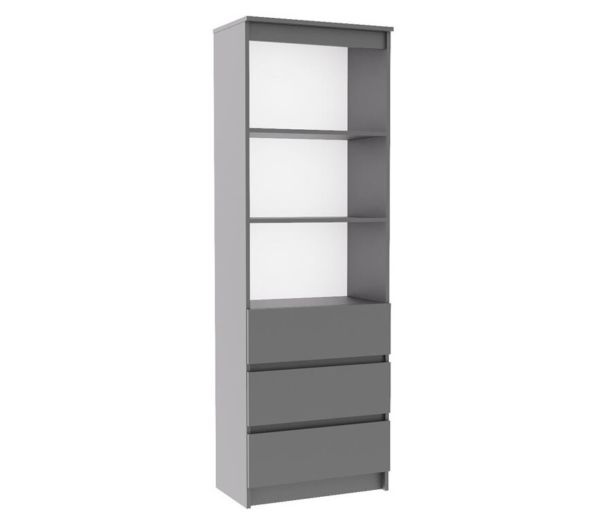 Шкаф открытый - стеллаж с полками и с тремя ящиками. Шкаф книжный с полками. Подходит для спальни, гостиной или детской комнаты. Размеры: ш 604* г 354* в 1800 мм. Цвет: белый, графит. Материал: ЛДСП. Производство: Пенза (ДСВ-Сол). Упаковка: 2 уп.