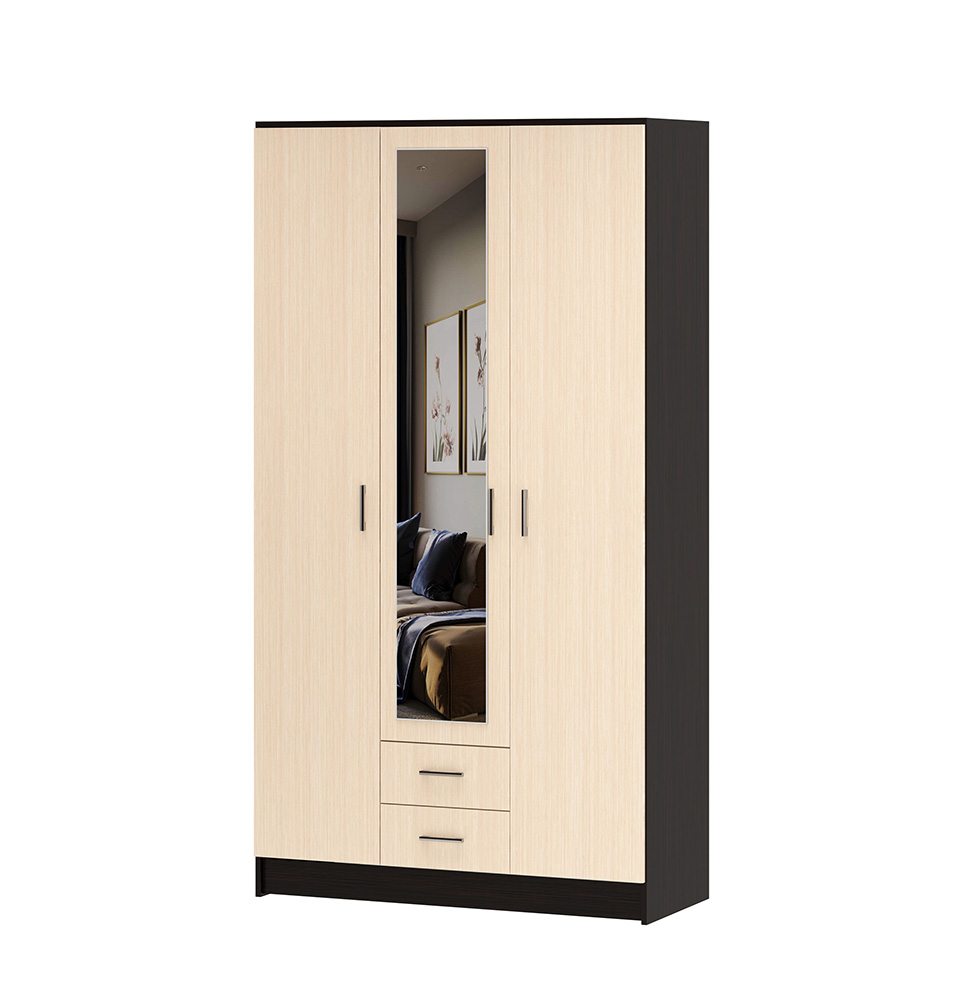 Шкаф для одежды трехдверный с 2 ящиками, шкаф для платья и белья. Шкаф комбинированный для спальни со штангой и полками, шириной до 1,4 метра, до 10 000 руб. Шкаф трехстворчатый с зеркалом из серии мебели для спальни София. Размеры: ш 1200* г 487* в 2200 мм. Изготавливается цвете: ясень темный/светлый, венге/дуб белфорт. Производство ― Пенза (Памир -Сол). Материал ― ЛДСП. Упаковка: 3уп, 120кг.