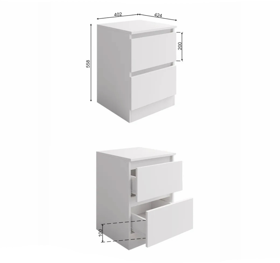 Тумба прикроватная с 2 ящикоми. Невысокая тумба для спальни. Из модульной серии мебели Мори. Размеры: ш 404* г 350* в 300 мм. Производство: Пенза (ДСВ-мебель -Сол). Материал: ЛДСП. Цвет: белый или графит. Упаковка: 1 уп.